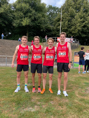 Der aktuell schnellste SGler Fabian Jenne lief in 14:55min auf Platz 1. Hinter ihm gab es einen hart ausgefochtenen Kampf zwischen Frederik Wehner (15:07min, Platz 2), Manuel Schräder (15:08min, Platz 3) und dem Wittgensteiner Timo Böhl, der um eine Sekunde auf Platz 4 verwiesen werden konnte. Julian Pulte komplettiert in neuer persönlicher Bestzeit 16:09min und auf Platz 8 im Gesamteinlauf der FLVW-Wertung den Erfolg der Wendener. Wenig überraschend konnte damit auch der Team-Titel gewonnen werden: Platz 1 von immerhin 15 Männerteams.